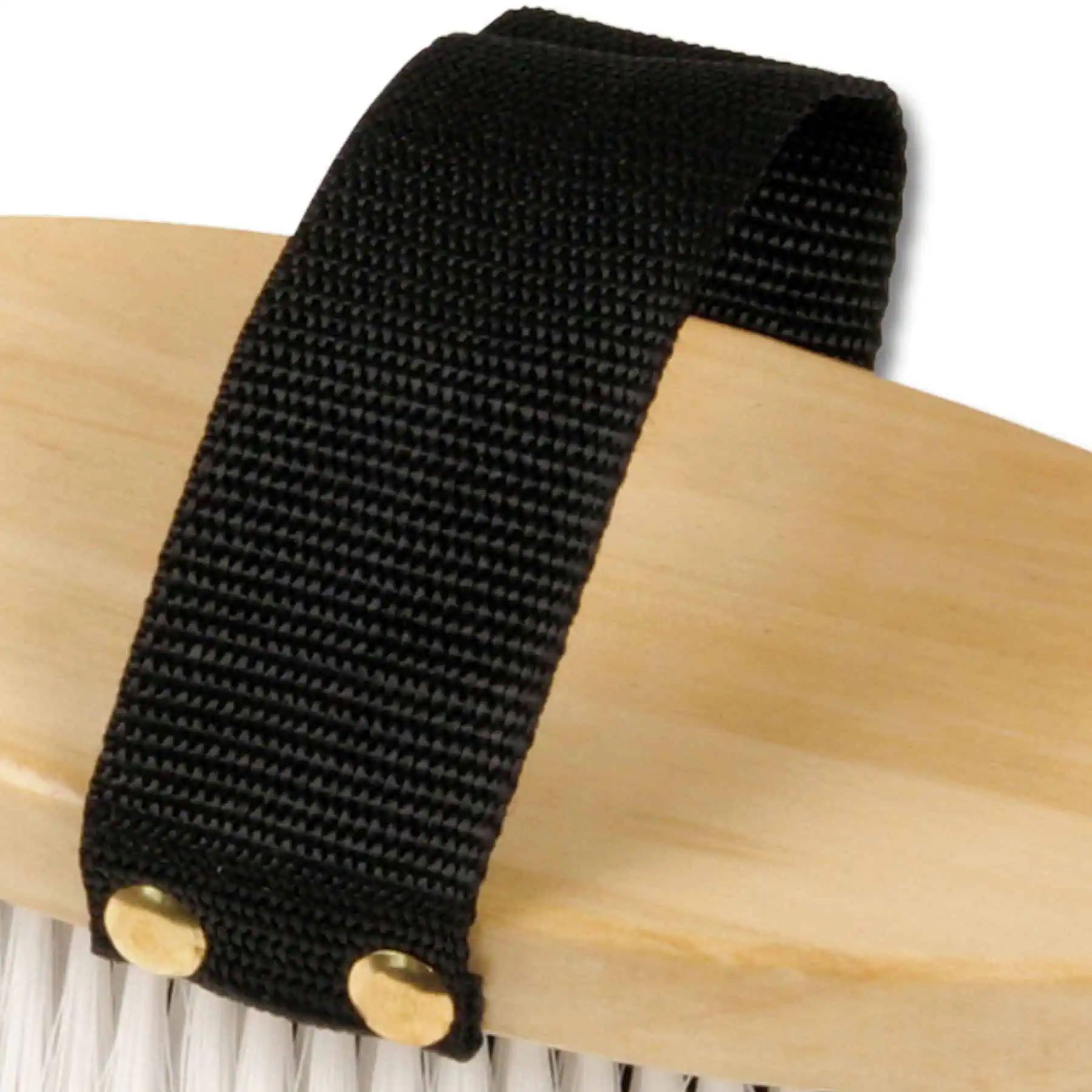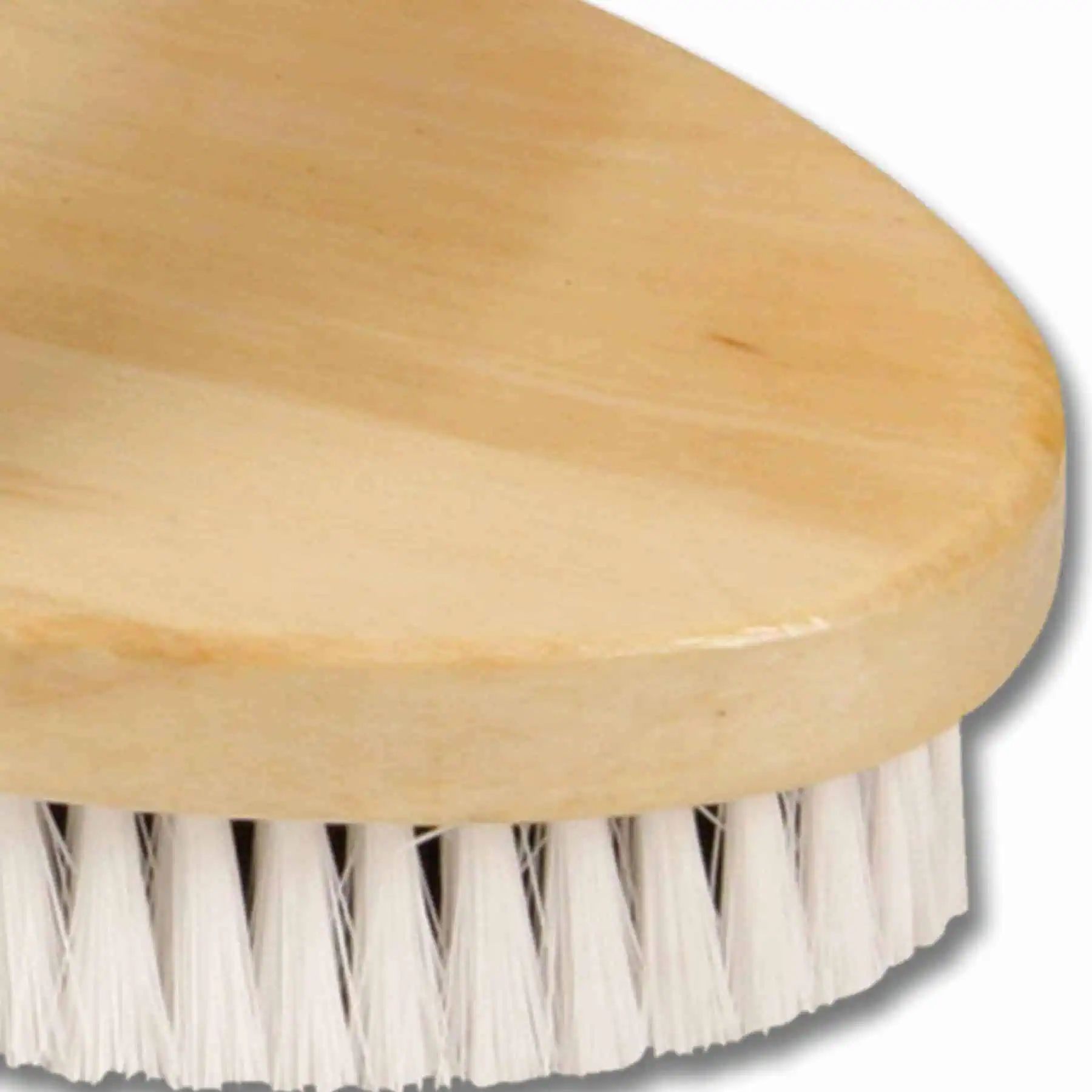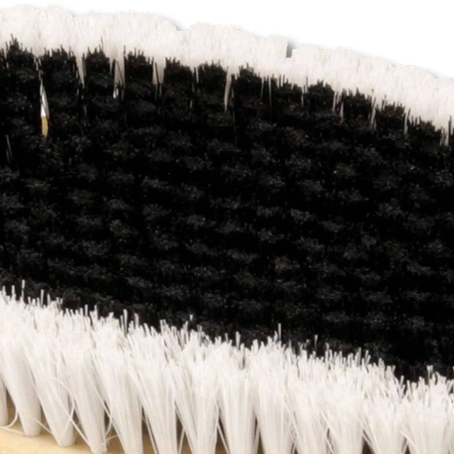 Mittelstarke Synthetikborsten in schwarz-weiß-Optik; in Naturholzrücken gefasst.